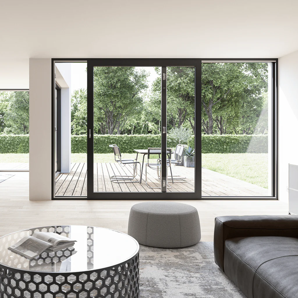 Parallel tilt and slide doors can be tilted for ventilation and slid open sideways for access with a smooth-running single-handed lever handle. When opening, the sash initially moves to the tilt position; when the handle is turned further, the sash returns to the parallel position and can then be slid to the side in front of fixed glazing. Parallel sliding and tilting doors are often used when hinged doors are in the way or there is not enough space for them.